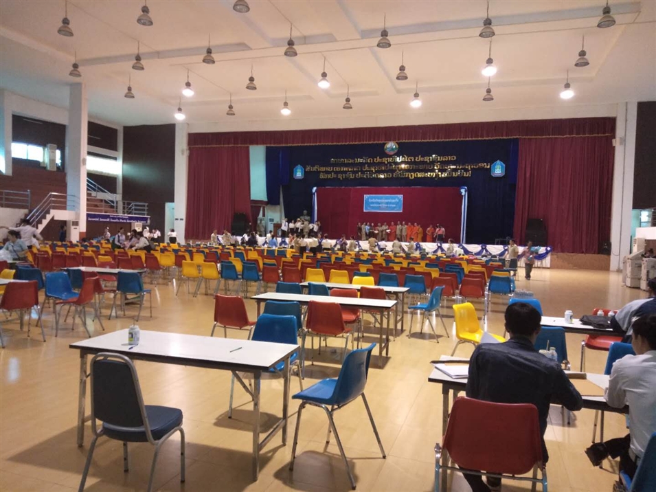 似乎每個學校都有這么一個報告廳,里面裝修得寬敞明亮,老撾國立大學也不例外。