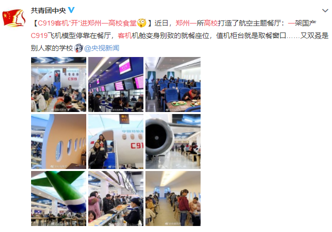 前段時(shí)間,微博@共青團(tuán)中央分享的一則“C919客機(jī)‘開(kāi)’進(jìn)鄭州一高校食堂”的消息引起網(wǎng)友熱議,評(píng)論精彩紛呈。