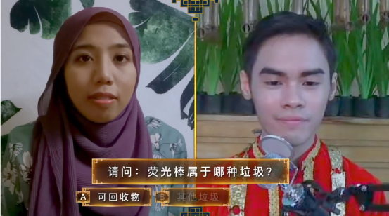 來自馬來西亞(左)以及印尼(右)的選手在參加由中國舉辦的漢語競(jìng)賽《漢語橋》