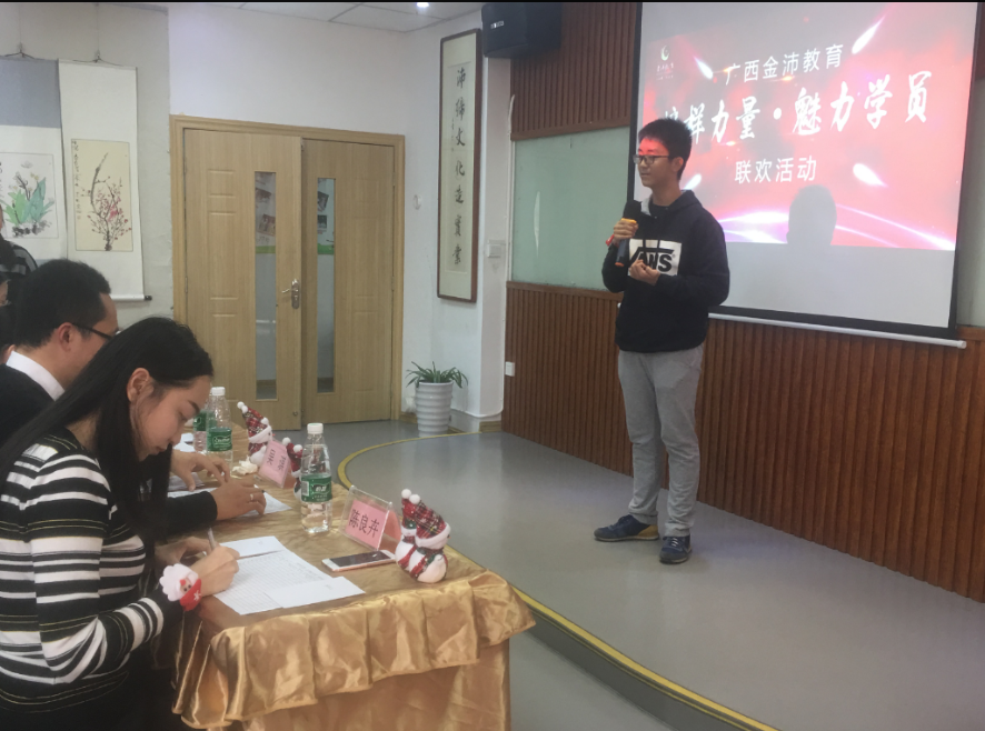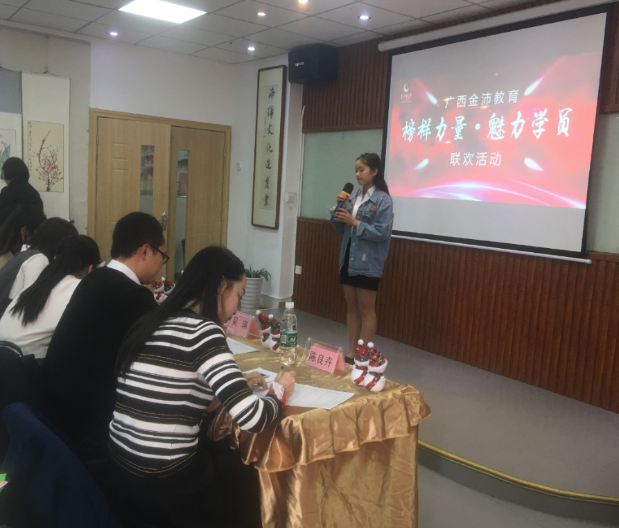 本次活動由廣西金沛教育發(fā)展有限公司南湖校區(qū)主辦,旨在通過本次的匯報演講,促進學員交流。金沛教育領導及金沛高級教師到現場觀摩了學員的演講,并為獲獎選手頒獎。