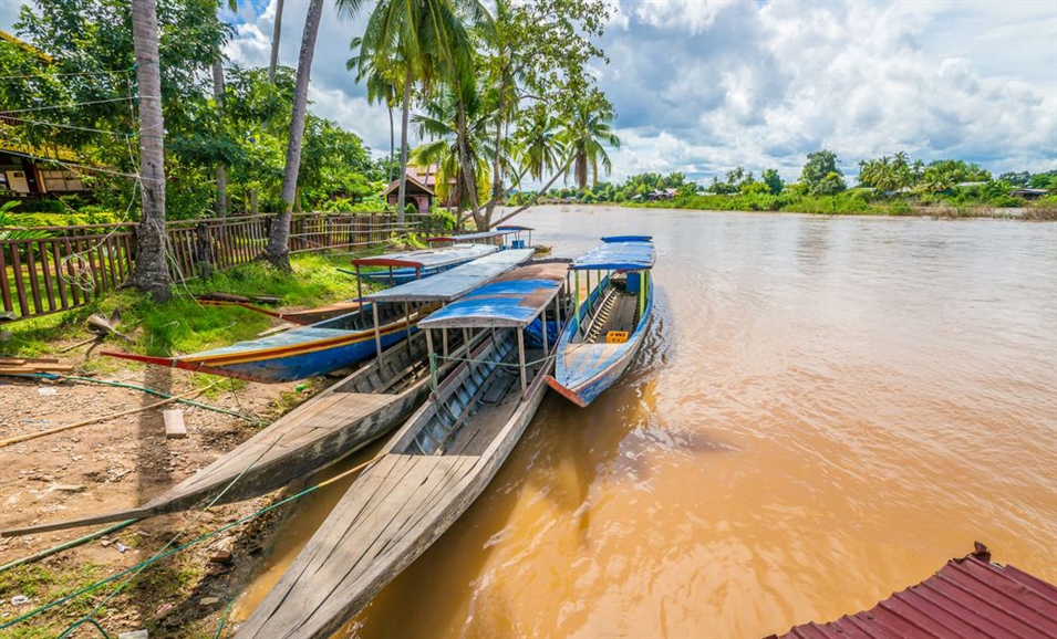 從北至南流經老撾的湄公河,在接近老、柬邊境的地方,有約50公里長的河道比較寬。雨季到來時,最寬的地方達14公里,是湄公河在老撾境內最寬的一段“腰”。旱季河水退落,這段“寬腰”會出現(xiàn)數以百計的小島。如果把小渚、沙洲都算上,數量過千,當地人略加夸張就把這個區(qū)域稱為“四千美島”。