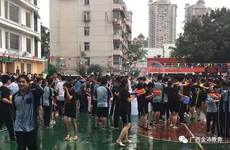 活動開始,高三學子進行“游龍翻身”的游戲,取“游龍翻身取金榜,十五中學我最棒”的含義。接下來身著東盟各國傳統(tǒng)服飾的學生為大家獻上了優(yōu)美的東盟國家舞蹈,展現(xiàn)了東盟各國的傳統(tǒng)舞蹈的魅力。隨后由學校校長帶隊,各年級老師共同參與,手持水瓢,將滿載祝福的水輕灑向所有高三學子,拉開了潑水狂歡的序幕。伴隨著歡快的音樂,潑水狂歡將本次活動帶向高潮,大家積極參與,手持水盆、小桶、水槍,你追我趕,相互潑灑,傳遞著著祝福與歡樂。以多種形式將各國文化風情融入學生的心理教育中。