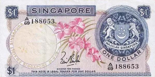 自 1965 年新加坡從馬來亞聯(lián)邦中退出并宣告獨(dú)立的兩年內(nèi),新加坡依舊使用著馬來亞與英屬婆羅洲元。直到 1967 年,原“馬來亞與英屬婆羅洲貨幣委員會”停止發(fā)行馬來亞與英屬婆羅洲元,新加坡才于當(dāng)年開始發(fā)行本國的鈔票“新加坡元”,簡稱新元或新幣。