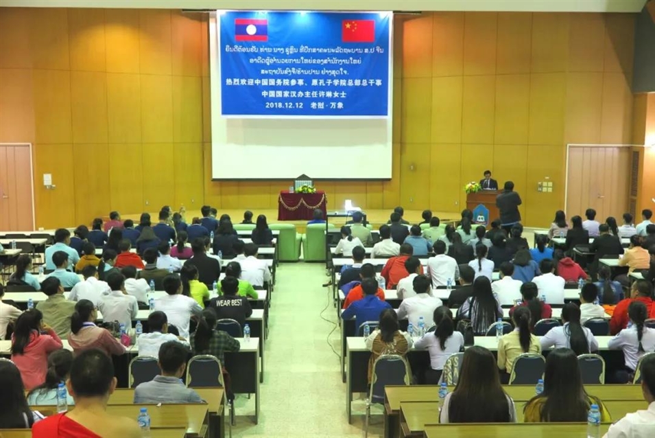 12月12日上午,中國(guó)國(guó)務(wù)院參事、原孔子學(xué)院總部總干事、中國(guó)國(guó)家漢辦主任許琳應(yīng)邀訪(fǎng)問(wèn)老撾國(guó)立大學(xué),并在老撾國(guó)立大學(xué)舉辦了題為《“一帶一路”與老撾和東盟》的主題講座。