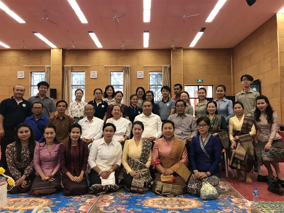 2019513號凌晨五點,老撾國立大學孔子學院新樓成功舉辦栓線祝福儀式,老撾國立大學校長宋西.諾潘塞、副校長宏頻.占塔翁、辦公室主任瑪妮淑和老撾國立大學孔子學院老方院長阮瑋蕾.賽雅勒、中方院長李肖以及中國志愿者老師等參加此次活動。