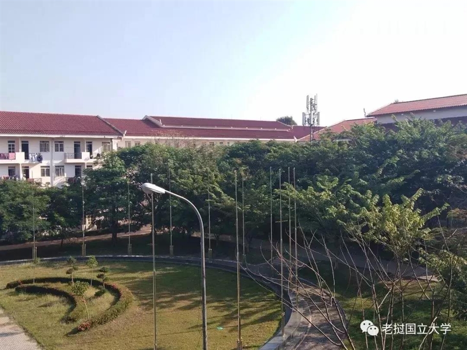 老撾國立大學(xué)校園面積很大,富有東南亞特色的熱帶植被,也保留了很多原始花木,宿舍大門有沒有一種要穿越時空隧道的感覺,高大的樹木遮蔽著宿舍樓,樓下環(huán)境優(yōu)美自然,很適合學(xué)習(xí)交流